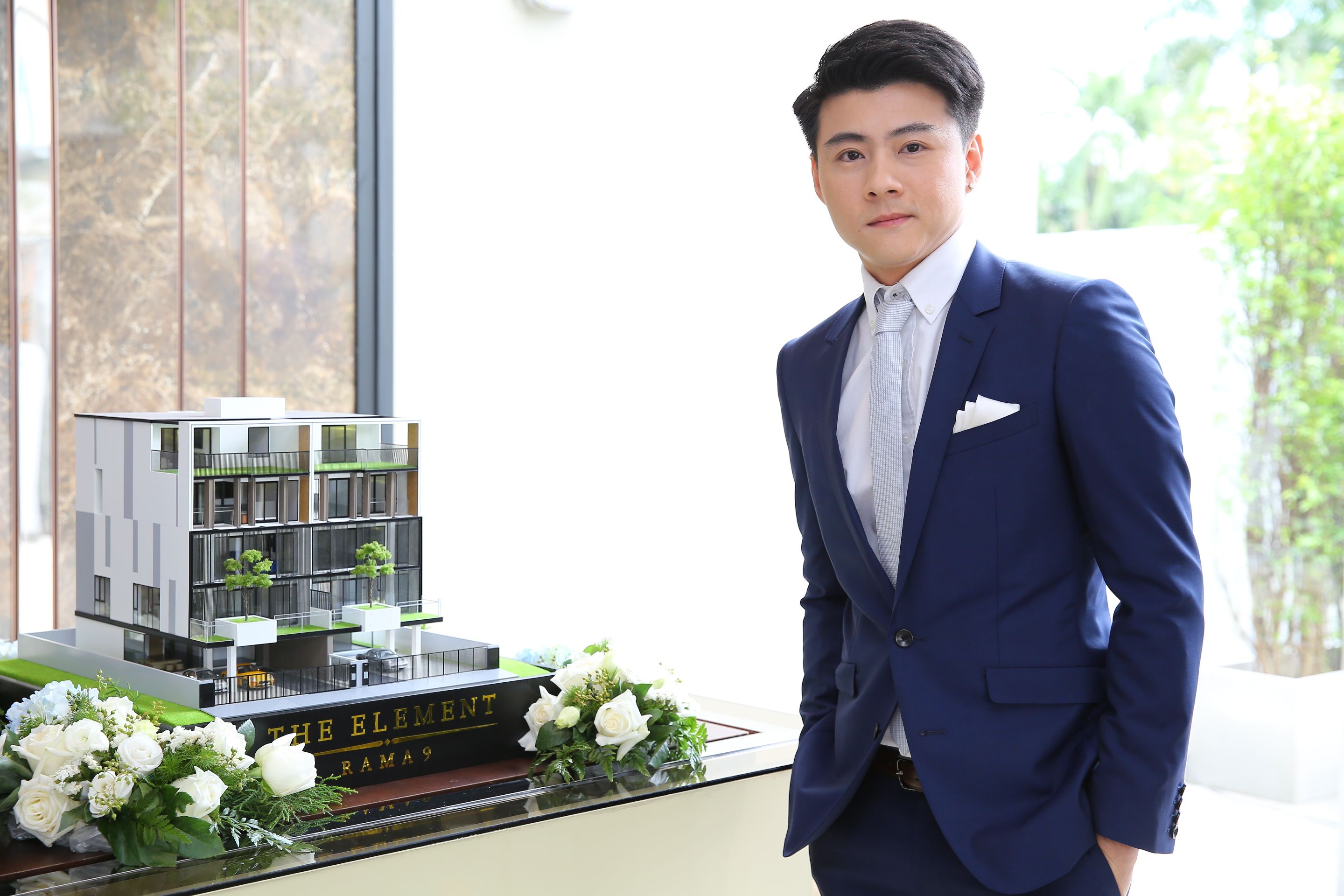 “โดยเรามองหาทำเลเพื่อทำ home office มาระยะหนึ่งแล้ว ดูที่ดินหลาย 10 แปลง เพราะมองเห็นโอกาสเนื่องจาก product ที่เราพัฒนานั้นยังเป็นส่วนน้อยที่ทำออกมาขายในตลาดและยังมีความต้องการออฟฟิศเพื่อทำงานและอยู่อาศัยในที่เดียวกันในทำเลที่ดีประกอบกับจังหวะดีที่เราได้ที่ดินแปลงนี้มาซึ่งอยู่ในทำเลที่เหมาะมากๆ เดินทางสะดวกไม่ว่าจะเดินทางไปสนามบินสุวรรณภูมิ หรือ อโศก ทองหล่อ เอกมัย ใช้เวลาเพียง 15 นาที ใกล้ the nine ซึ่งจากที่ research ข้อมูลพบว่าพื้นที่ละแวกนี้มีคนทำ office ในบ้านเยอะแต่เป็นการดัดแปลงพื้นที่ตัวบ้านมาเป็นออฟฟิศซึ่งทำให้พื้นที่ใช้สอยไม่ลงตัวนักและจากผลสำรวจโครงการที่มีลักษณะเดียวกันนี้ยังมียอดขายที่ดี จึงมีแนวคิดเกิดเป็น “โครงการ The Element Rama 9” จากความตั้งใจที่จะทำให้โครงการนี้ตอบโจทย์สำหรับนักธุรกิจรุ่นใหม่ผู้ที่ต้องการขยายธุรกิจในทำเลที่มีศักยภาพแบ่งพื้นที่ใช้สอยเพื่อทำงานและอยู่อาศัยอย่างลงตัว