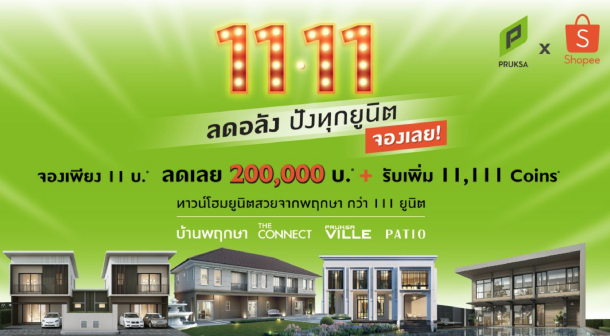 นางสาวอังคณา ลิขิตจรรยากุล รักษาการรองกรรมการผู้จัดการใหญ่ สายงานการตลาดองค์กรกลุ่ม บริษัท พฤกษา โฮลดิ้ง จำกัด (มหาชน) เปิดเผยว่า ได้ร่วมมือกับช้อปปี้ (Shopee) แพลตฟอร์มอีคอมเมิร์ซ จัดทำแคมเปญ “11.11 ลดอลัง ปังทุกยูนิต” ด้วยการจัดโปรโมชั่นจำหน่ายคูปองผ่านช้อปปี้ราคา 11 บาท สามารถนำมาใช้เป็นส่วนลดมูลค่าสูงถึง 200,000 บาท ในการซื้อโครงการทาวน์โฮมพร้อมอยู่ 4 แบรนด์ ได้แก่ บ้านพฤกษา พฤกษาวิลล์ เดอะคอนเนค และพาทิโอ