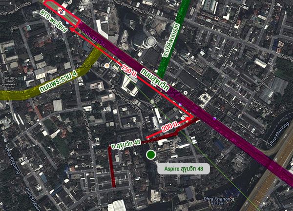 การเดินทางมายังคอนโด Aspire สุขุมวิท 48 สามารถทำได้ง่ายๆ ด้วยการนั่งรถไฟฟ้า BTS มาลงที่สถานีพระโขนง ซึ่งอยู่ห่างจากปากซอยสุขุมวิท 48 ประมาณ 500-600 เมตร ส่วนตัวโครงการอยู่ถัดเข้ามาในซอยอีกเกือบ 200 เมตร ด้วยระยะขนาดนี้ยังถือว่าเดินได้ไม่ยาก แต่ติดอยู่นิดหน่อยตรงที่จากตัวสถานีรถไฟฟ้าลงมาทางถนนพระราม 4 ต้องข้ามทางม้าลายที่แยกใหญ่อีกทอด ซึ่งต้องเสี่ยงเรื่องความปลอดภัยจากรถราบนท้องถนนบ้างไม่มากก็น้อย ถ้าจะออกจากโครงการไปยังรถไฟฟ้าแล้วไม่อยากเดิน ก็มีทางเลือกให้ทั้งบริการพี่วินมอเตอร์ไซค์รับจ้าง หรือจะใช้บริการ Shuttle Bus ของทางโครงการที่มีบริการรับส่งตามเวลาที่กำหนดก็ได้เช่นกัน