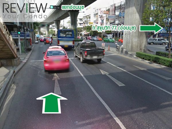 เลยจาก BTS อ่อนนุชมาก็จะเจอแยกอ่อนนุช ด้านขวามือจะเป็นถนนสุขุมวิท 77 หรือซอยอ่อนนุช ให้ขับตรงไปเลยนะครับ