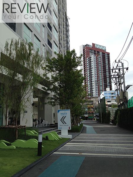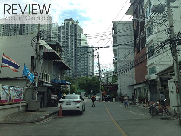 ส่วนบริเวณรอบๆ โครงการยังมีบรรยากาศเป็นชุมชนที่อยู่อาศัยกันมาก่อน ในซอยสุขุมวิท 48 มีร้านค้า ร้านสะดวกซื้อ ร้านอาหาร และร้านซักรีดบ้าง ซึ่งก็เป็นอาคารพาณิชย์สูง 4-5 ชั้น ถัดมาทางถนนสุขุมวิทก็ยังมีร้านค้าอยู่อีกไม่น้อยเช่นกัน รอบๆ ในรัศมีใกล้เคียงมีสาธารณูปโภคครบถ้วนดีเช่นกัน ทั้งโรงพยาบาลกล้วยน้ำไท ที่ทำการไปรษณีย์ ธนาคารพาณิชย์หลายแห่ง รวมถึงมหาวิทยาลัยกรุงเทพ วิทยาเขตกล้วยน้ำไท และห้างสรรพสินค้าอีกหลายแห่ง จัดว่าอุดมสมบูรณ์ดีทีเดียวครับ