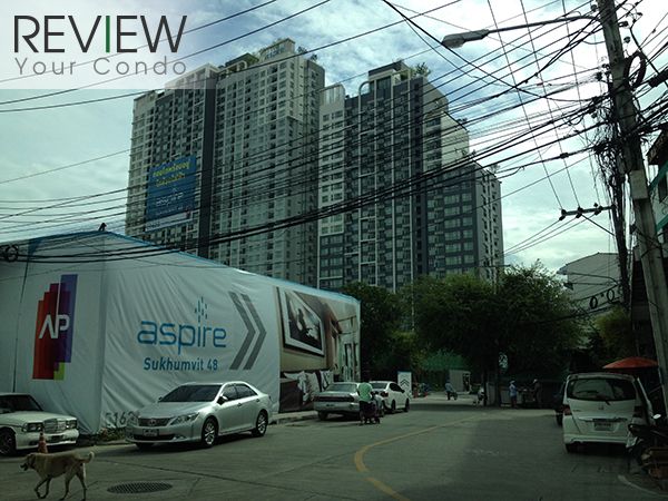 โครงการ Aspire สุขุมวิท 48 อยู่ถัดเข้ามาจากปากซอยเป็นระยะทางเกือบ 200 เมตร ลักษณะที่ดินของโครงการจะเป็นแนวยาวเริ่มจากฝั่งซอยสุขุมวิท 48 ไปจรดคลองพระโขนง พื้นที่ภายในแบ่งเป็น 3 อาคาร คือ อาคาร N (North) สูง 25 ชั้น อาคาร S (South) สูง 30 ชั้น และอาคารจอดรถสูง 8 ชั้นซึ่งอยู่ด้านในสุด อาคารทั้งหมดตั้งอยู่ตามแนวทะแยงทิศเหนือ-ใต้ ทำให้ห้องส่วนใหญ่ค่อนไปในตำแหน่งทิศตะวันออกและตะวันตก ห้องทางด้านทิศตะวันออกจะได้ City View เห็นทั้งรถไฟฟ้า BTS ถนนสุขุมวิท และวิวตึกสูงตามแบบฉบับเมืองใหญ่ ส่วนทางด้านทิศตะวันตกที่ใครๆ กลัวว่าแดดจะร้อนแต่กลับได้วิวที่สวยกว่า ด้วยวิวมุมกว้างไร้ตึกสูงให้รกตา แถมยังได้วิวแม่น้ำ ท่าเรือ และในวันที่อากาศดีๆ ก็สามารถมองเห็นได้ไกลถึงบางกระเจ้าเลยทีเดียว ใครที่เลือกห้องในชั้นสูงๆ ก็จะได้เปรียบเรื่องวิวไปเต็มๆ ส่วนปัญหาเรื่องแดดร้อนก็อาจจะร้อนบ้างแต่ยังโชคดีที่บางห้องอยู่ในตำแหน่งทิศตะวันตกเฉียงใต้ จึงไม่โดนแดดเต็มที่ ใครที่อยากได้ห้องวิวสวยๆ ก็ลองพิจารณากันดูได้ครับ