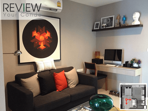 เมื่อเข้ามาในห้องแล้วจะเจอกับส่วนของ Living Area ก่อนเลยนะครับ มุมนี้จะเป็นมุมของโซฟาดูทีวีครับ