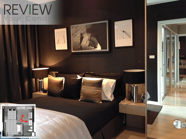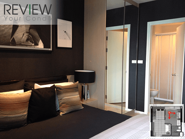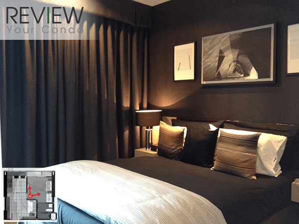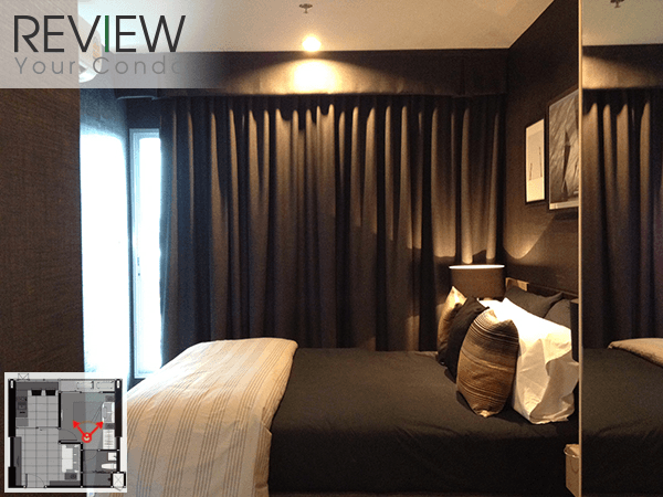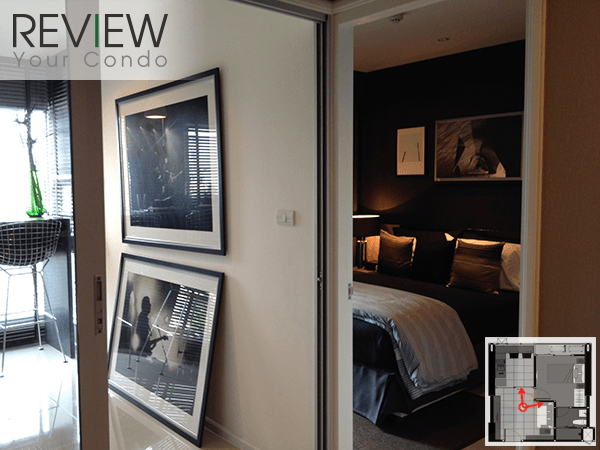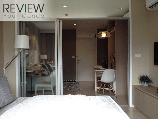 ถัดมาด้านในเป็นห้องนอนนะครับ อย่างที่บอกว่า Type นี้จะเน้นที่ห้องนอนเป็นพิเศษ ห้องนอนจะมีประตูกระจกบานเลื่อนกั้นนะครับ ไม่ใช่ผนังเหมือน Type Sky Kitchen ทำให้ห้องดูโล่งขึ้นมาเยอะเลยครับ