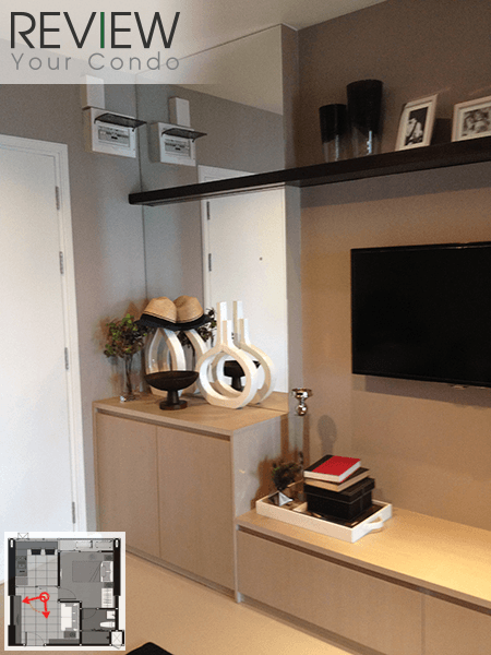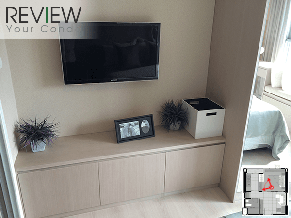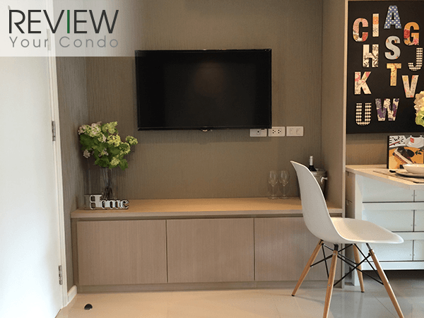 ทีวีที่ Built in มาให้ดูจะเป็นแบบแขวนนะครับ ทำให้ชั้นวางทีวีดูโล่งมีพื้นที่เหลือให้วางของเพิ่มขึ้นด้วยครับ