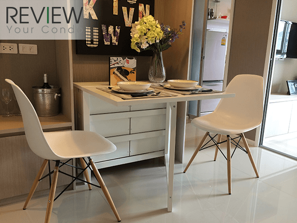 ห้องนี้โต๊ะทานอาหารจะออกมาอยู่ที่ส่วน Living Area ใกล้ๆ กับชั้นวางทีวีนะครับ