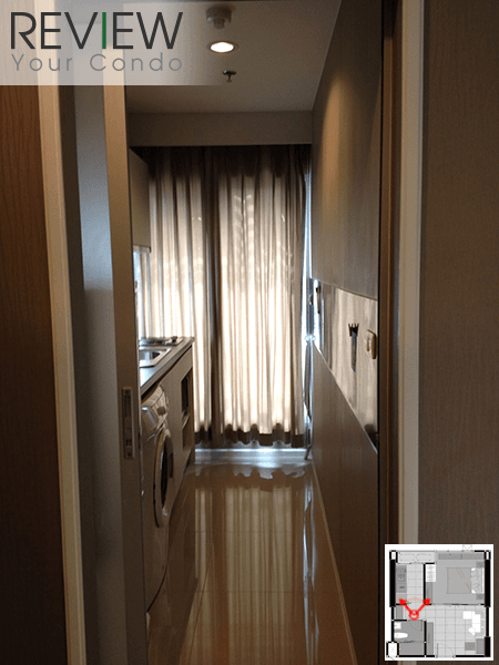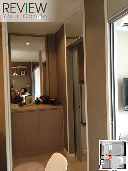 ตรงนี้เป็นช่องว่างตรงกลางก่อนจะแยกไปเป็นห้องครัวและห้องน้ำนะครับ มีการ Built in ตู้เก็บของไว้ด้วย