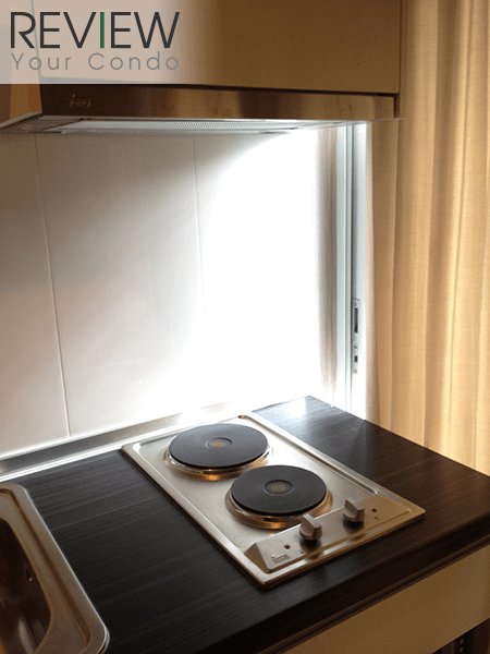 เตาไฟฟ้า Hot Plate จะอยู่ด้านในติดกับระเบียง แต่ดูไม่ค่อยดีเลยนะครับที่อยู่ติดกับผ้าม่านแบบนี้ เวลาทำอาหาร ทั้งน้ำมันกระเด็น ทั้งกลิ่นอาหารคงจะติดผ้าม่านเอาได้