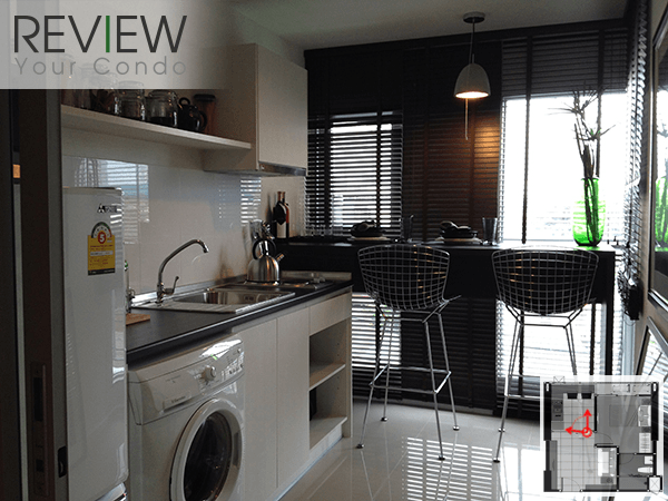 จากที่ได้ชมห้องตัวอย่างแล้วต้องบอกว่าแปลนห้องไม่ได้มีผิดแผกจากคอนโดในระดับเดียวกัน ฟังก์ชั่นการใช้งานในห้องค่อนข้างครบถ้วน พื้นห้องครัวและห้องน้ำใช้เป็นกระเบื้องเซรามิค ในขณะที่พื้นห้องนอนและห้องนั่งเล่นเป็นลามิเนตตามมาตรฐาน เคาน์เตอร์ครัวมีทั้งตัวดูดควัน เตาไฟฟ้า และซิงค์ล้างจานติดตั้งมาให้เรียบร้อยพร้อมใช้งาน รวมถึงในห้องน้ำที่แยกส่วนแห้งส่วนเปียกด้วยกระจกบานเลื่อน ถึงแม้จะบอบบางไปหน่อยแต่ก็พอเหมาะกับการใช้งาน หน้าตาของวัสดุสุขภัณฑ์ที่ให้มาพร้อมห้องเป็นเกรดธรรมดาทั่วๆ ไปนะครับ ไม่ได้หรูหราสวยงามมากนัก ออกจะดูว่าทางโครงการลดเกรดวัสดุบางตัวลงมากเกินไปด้วยซ้ำ ทำให้ดูไม่ค่อยสมราคาเท่าไหร่ ส่วนที่น่าประทับใจก็เห็นจะเป็นเรื่องวิวของห้องทางด้านทิศตะวันตก ที่ถึงแม้จะต้องเจอกับแดดร้อนๆ ในช่วงบ่าย แต่กลับได้วิวมุมสูงที่สบายตากว่ามาก ถ้าไม่ติดปัญหาเรื่องราคาลองเลือกห้องในชั้นที่สูงซักหน่อย ก็จะได้วิวกว้างไร้สิ่งบดบังสายตา ส่วนภายในห้องถ้าตกแต่งดีๆ ก็ทำให้น่าอยู่ได้ไม่ยากครับ