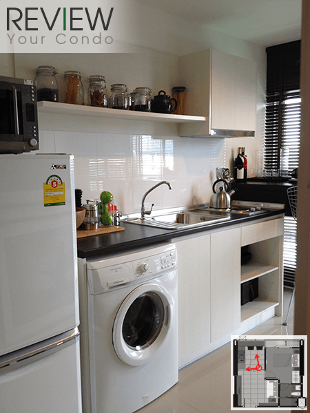 ภายในครัวนะครับ จะมีช่องใส่ไมโครเวฟและเครื่องซักผ้าอยู่ด้านล่าง ด้านบนจนชั้นลอยเก็บของ