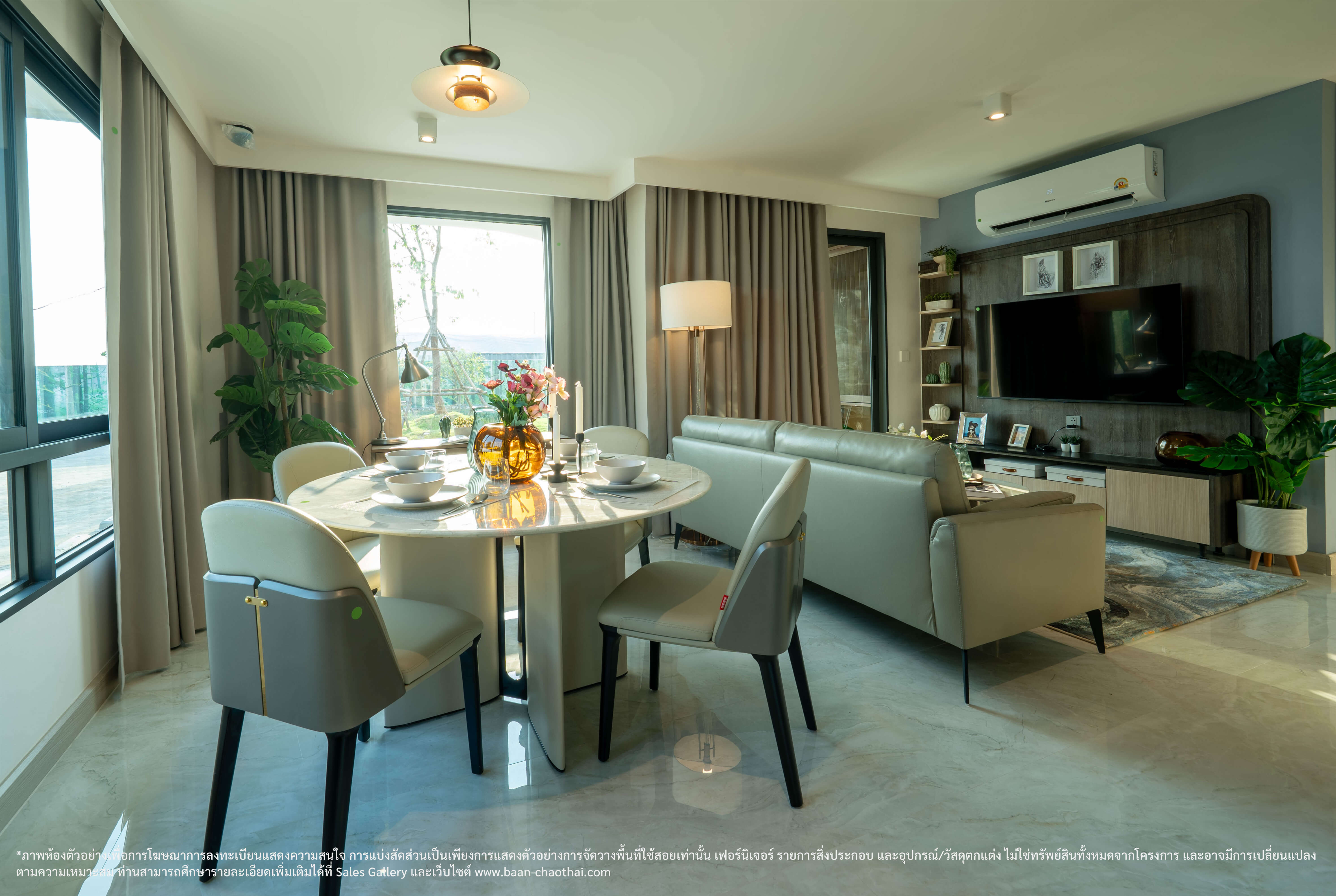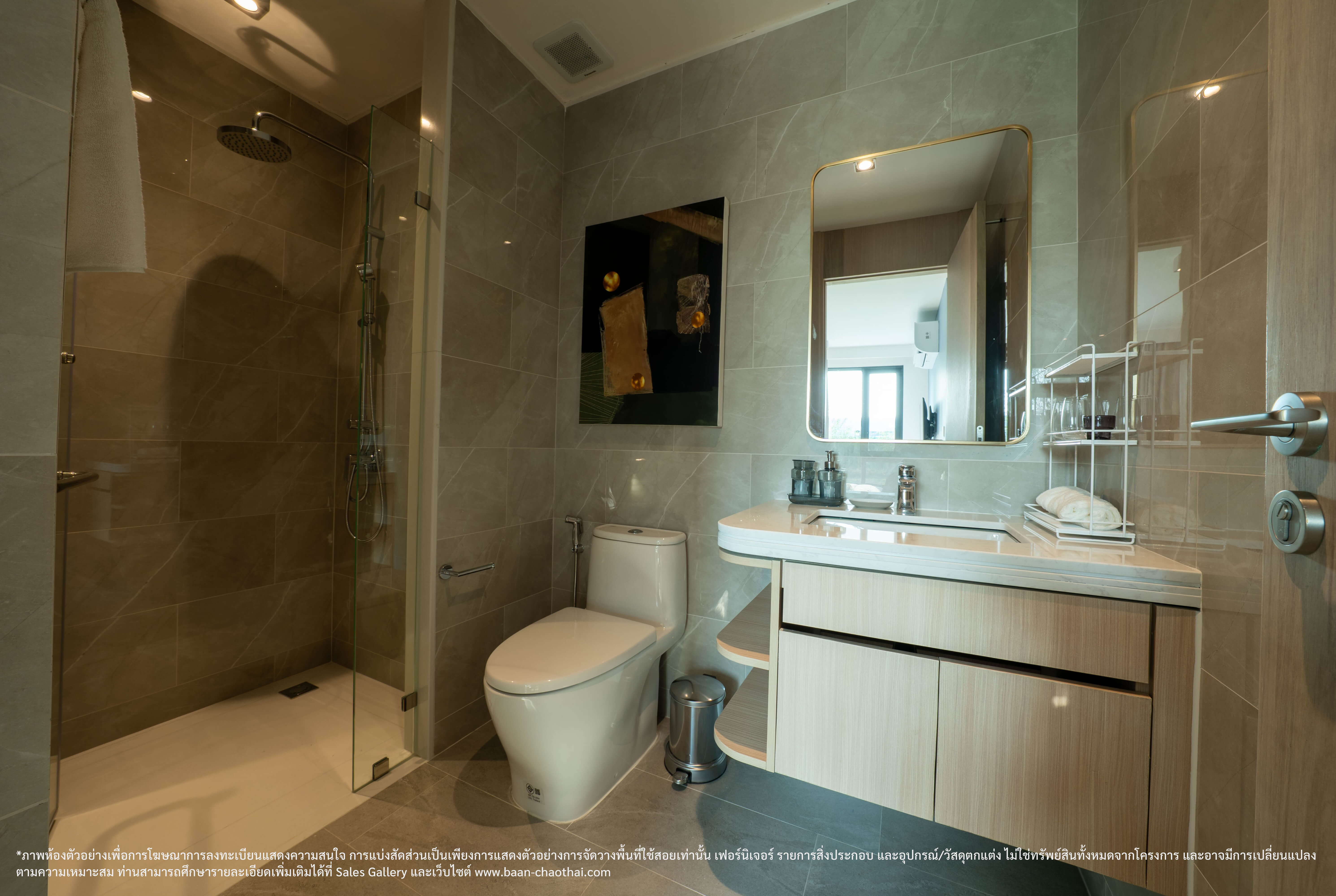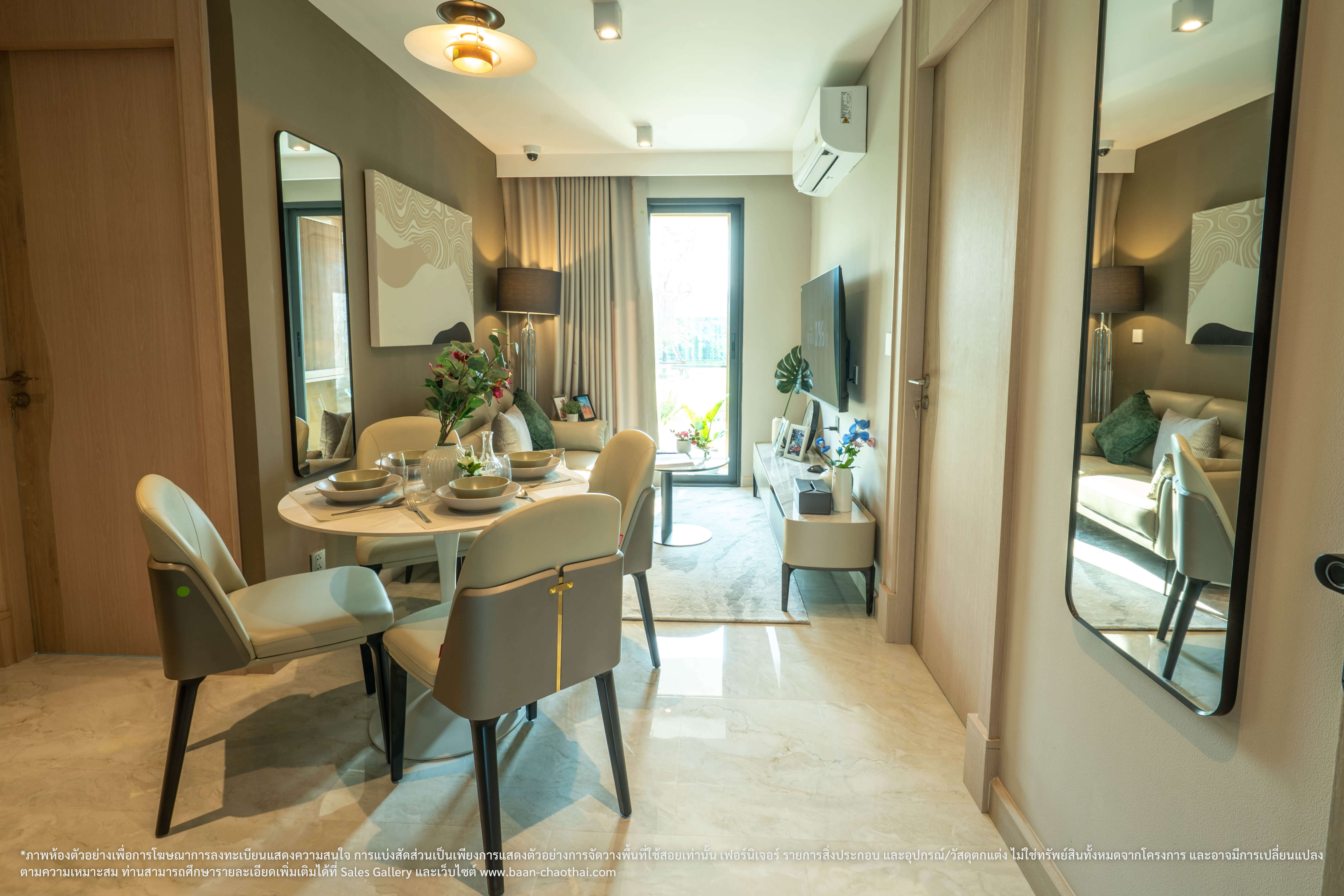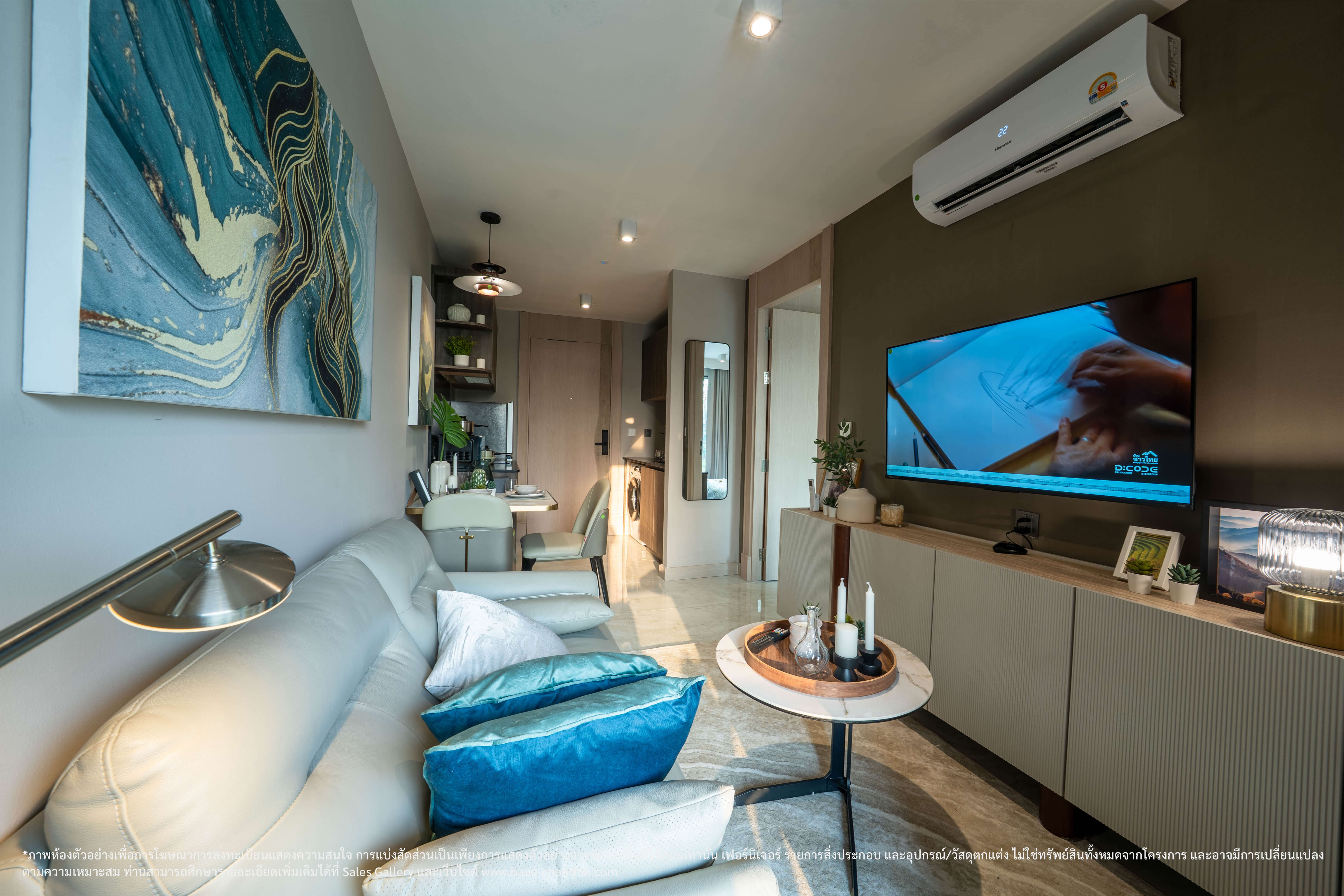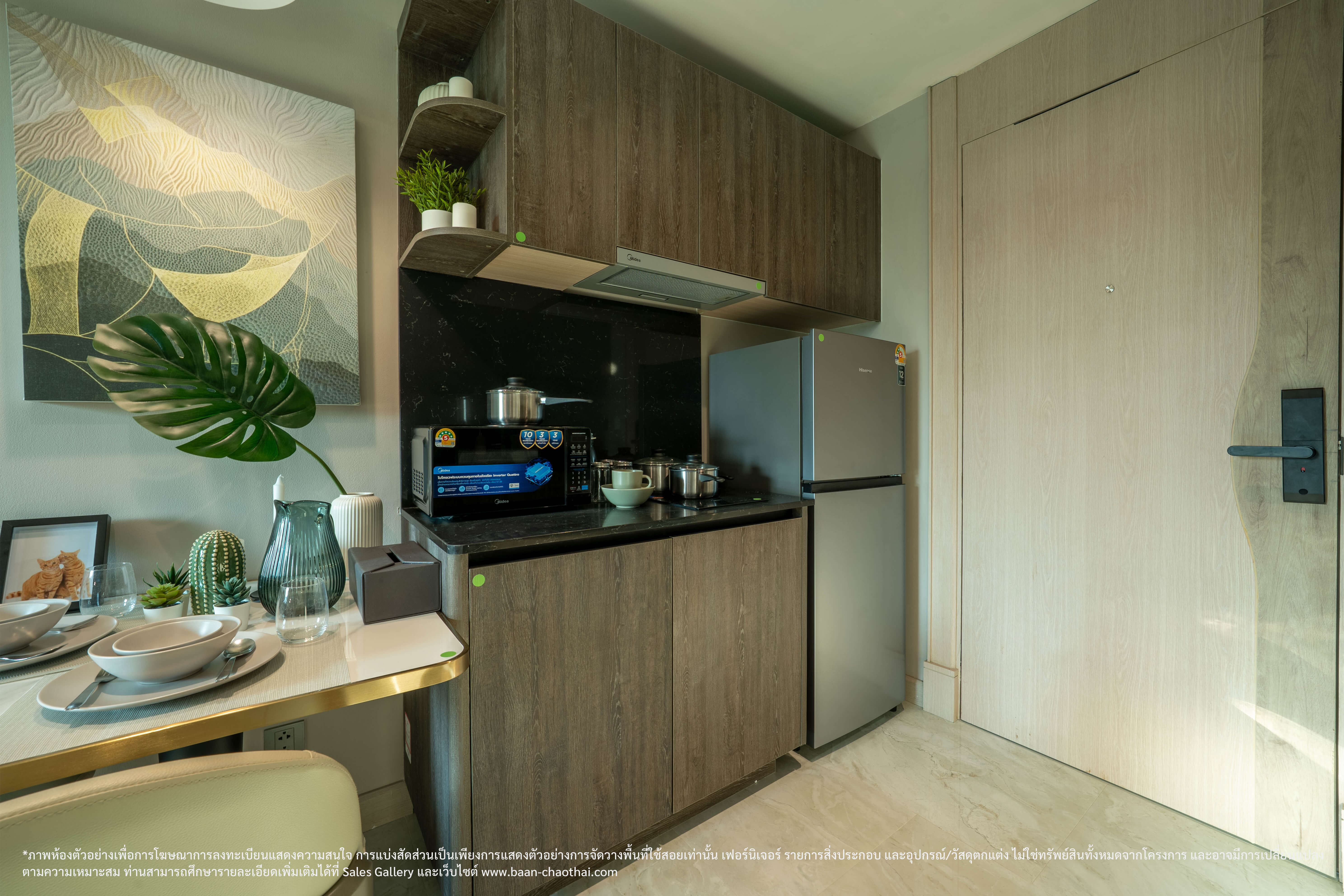 * ข้อสงวนสิทธิ รายการของตกแต่ง เครื่องใช้ไฟฟ้า และอุปกรณ์ข้างต้น เป็นทรัพย์สินที่ขายพร้อมกับห้องชุดในโครงการฯ ไม่ใช่ของแถมแต่อย่างใด / การรับประกันทรัพย์สินที่ระบุข้างต้น เป็นไปตามข้อกำหนด และเงื่อนไขการรับประกันของผู้ผลิต, ผู้จัดจำหน่ายทรัพย์สิน หรือผู้ติดตั้ง ในกรณีที่เกิดความชำรุดบกพร่องใด ๆ ผู้ซื้อจะต้องใช้สิทธิเรียกร้องกับผู้ผลิต, ผู้จัดจำหน่ายหรือผู้ติดตั้งเองโดยตรง / กลุ่มเจ้าของโครงการฯ ขอสงวนสิทธิการปรับเปลี่ยนรายการทรัพย์สินที่ระบุข้างต้น โดยจะเลือกใช้รายการที่มีลักษณะ คุณภาพ และคุณสมบัติใกล้เคียงหรือเทียบเท่าที่ระบุไว้