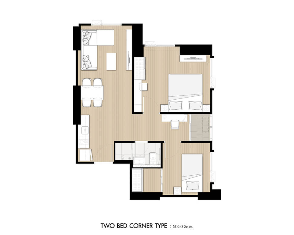 1 Bedroom Plus Corner 34.30 ตร.ม.