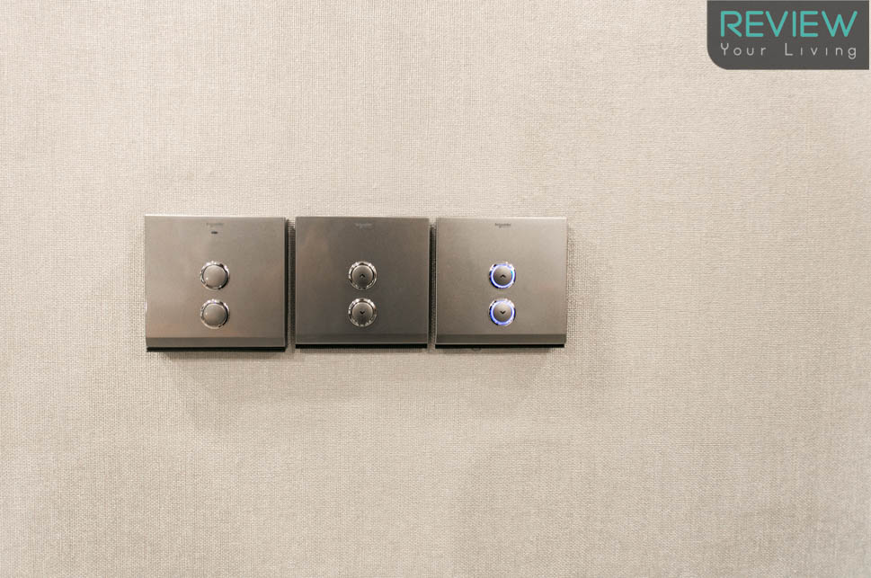 สวิทช์ Schneider Electric โดยจะมีไฟ LED บอกสถานะการเปิด-ปิดไฟเป็นสีฟ้าอยู่รอบปุ่ม และ Wallpaper ทางโครงการจะติดตั้งมาให้ด้วย ซึ่งมีให้เลือกระหว่างโทนสีเข้มและสีอ่อนค่ะ