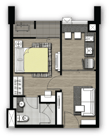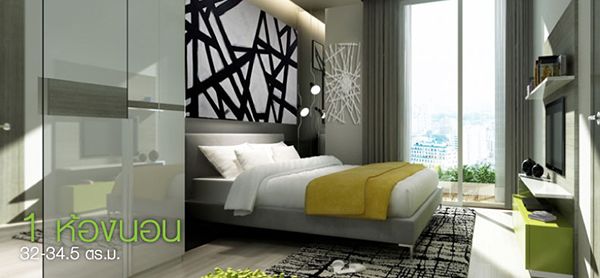 - 1 ห้องนอน ขนาด 32 – 35.5 ตารางเมตร
