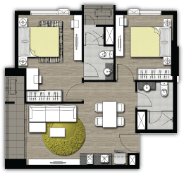 - 2 ห้องนอน ขนาด 59 – 61 ตารางเมตร