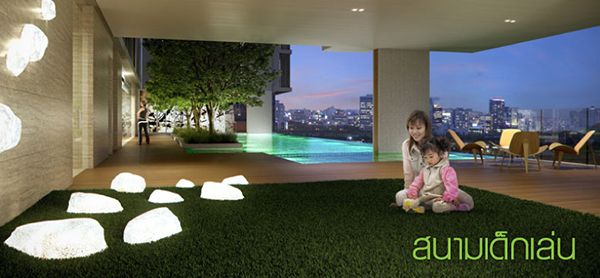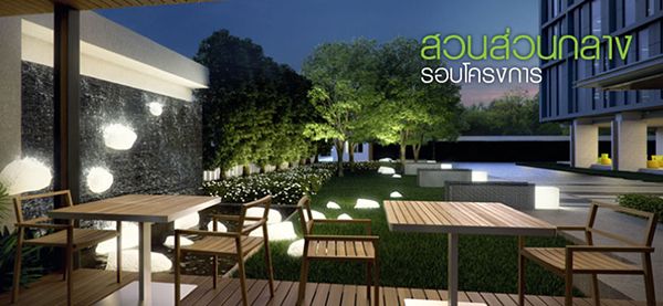- พื้นที่สวนหย่อยด้านหน้าอาคารและสวนส่วนกลางรอบโครงการ
