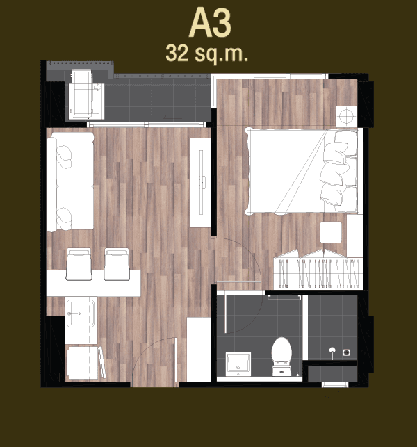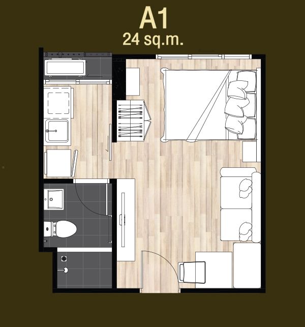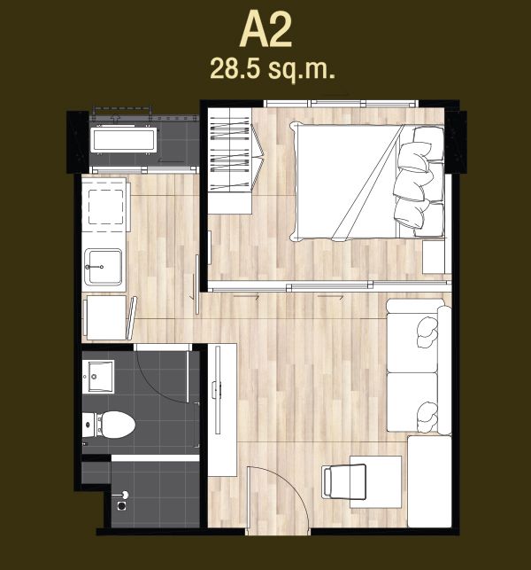 - 1 ห้องนอน ขนาด 28.5 – 39 ตารางเมตร