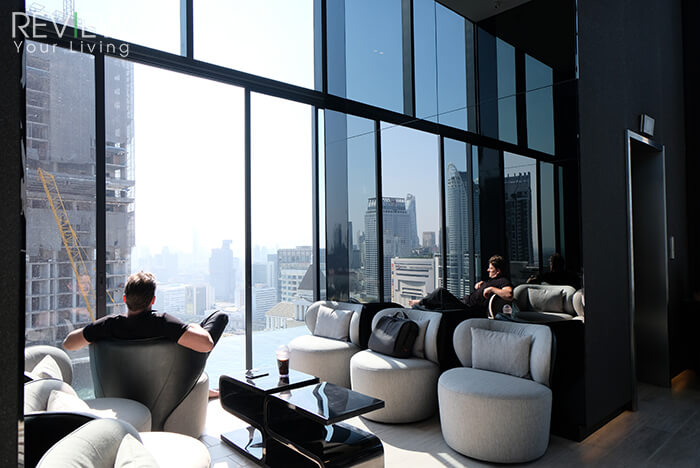 สำหรับห้องพักอาศัยจะเริ่มที่ชั้น 8 เป็นต้นไปนะคะ โดยชั้นนี้จะมีสวนส่วนกลางมาให้ด้วยทั้ง 2 ฝั่ง ส่วน Facility หลักๆ นั้นจะอยู่ที่ชั้น 30 โดยเป็นจุดเด่นของโครงการนี้เลยก็ว่าได้ค่ะ เพราะมีสระว่ายน้ำแบบ 360 องศา ล้อมรอบอาคารเลย ซึ่งลูกบ้านจะได้เต็มอิ่มกับวิวสวยๆ ในมุมสูงขณะกำลังพักผ่อนอยู่ในพื้นที่ส่วนกลาง ซึ่งแต่ละส่วนของสระว่ายน้ำจะมีพื้นที่จะกว้าง แคบ และตื้นต่างกันนะคะ จะมีส่วนที่เป็น Shallow Pool สระเด็ก และส่วนจากุซซี่ พื้นที่ตรงกลางสระแบ่งเป็น 3 ส่วน แต่ละส่วนจะมีทางเดินเชื่อมกันทั้งหมด ส่วนที่อยู่ด้านหน้าจะเป็น Library และ Business Center ถัดเข้ามาตรงกลางเป็น Social Club ห้องนี้จะมาพร้อมโต๊ะเกมส์รองรับวันพักผ่อน ส่วนพื้นที่ด้านหลังสุดเป็น Social Club ห้องนี้จะมีส่วนเตรียมอาหารพร้อม Long Table รองรับปาร์ตี้ของลูกบ้าน ซึ่งทั้ง 3 ส่วนนี้ผนังรอบด้านจะเป็นกระจกทั้งหมด และมีประตูบานเลื่อนที่สามารถเปิดเชื่อมออกสระว่ายน้ำได้ทุกส่วน นอกจากนี้ยังมีบันไดเดินขึ้นลงไปชั้น 29M และ 30M ถ้าเดินลงไปจะเป็นห้องน้ำแยกชายหญิง, ห้องสตรีม และซาวน่า แต่ถ้าไต่บันไดขึ้นไปจะเป็นห้องฟิตเนสค่ะ เรียกได้ว่าทางโครงการใส่ใจทุกรายละเอียดออกแบบโดยคำนึงถึงผู้อยู่อาศัยเป็นหลัก จนไม่แปลกใจเลยค่ะว่า ไอดีโอ คิว สยาม-ราชเทวี เป็นโครงการที่ดีที่สุดในย่านนี้จริงๆ