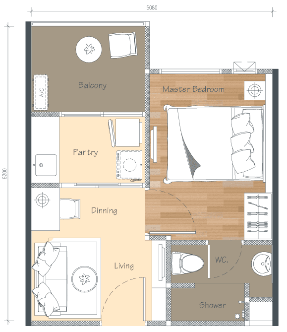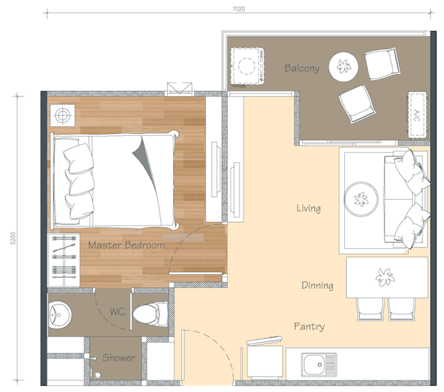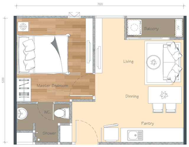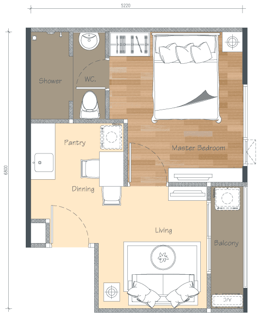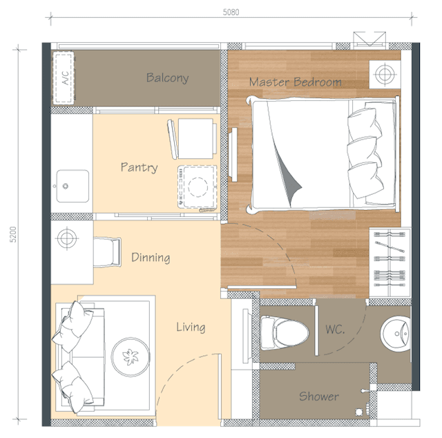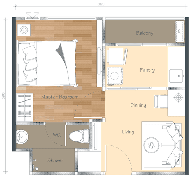 • 1 ห้องนอน ขนาด 26.25 – 40.5 ตารางเมตร