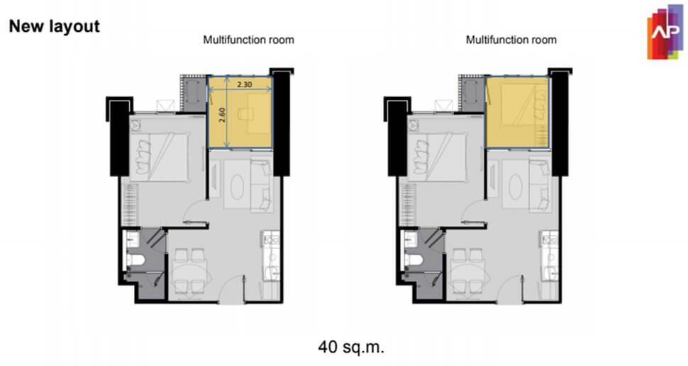 สำหรับ Layout จะมาด้วยแนวคิด Supreme Space Design in Tomorrow’s Functionality จัดวางฟังก์ชั่นอย่างเป็นสัดส่วน ขนาดยูนิตของโครงการนี้จะเริ่มต้นที่ STUDIO 25.50 ตร.ม. 1 Bedroom 30.00-32.00 ตร.ม. 1 Bedroom Plus 35.00-40.00 ตร.ม. และ 2 Bedroom 48.50-60.00 ตร.ม. โดยนำเอาเทคนิคการวางยูนิตแบบ Interlock มาใช้กับห้องแบบ 1 Bedroom กับ 1 Bedroom Plus เพื่อให้แต่ละยูนิตมีพื้นที่ใช้สอยภายในห้องเพิ่มมากขึ้น และยังมี Layout แบบใหม่จาก AP มาลงโครงการนี้ที่แรกด้วยค่ะ