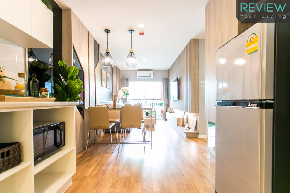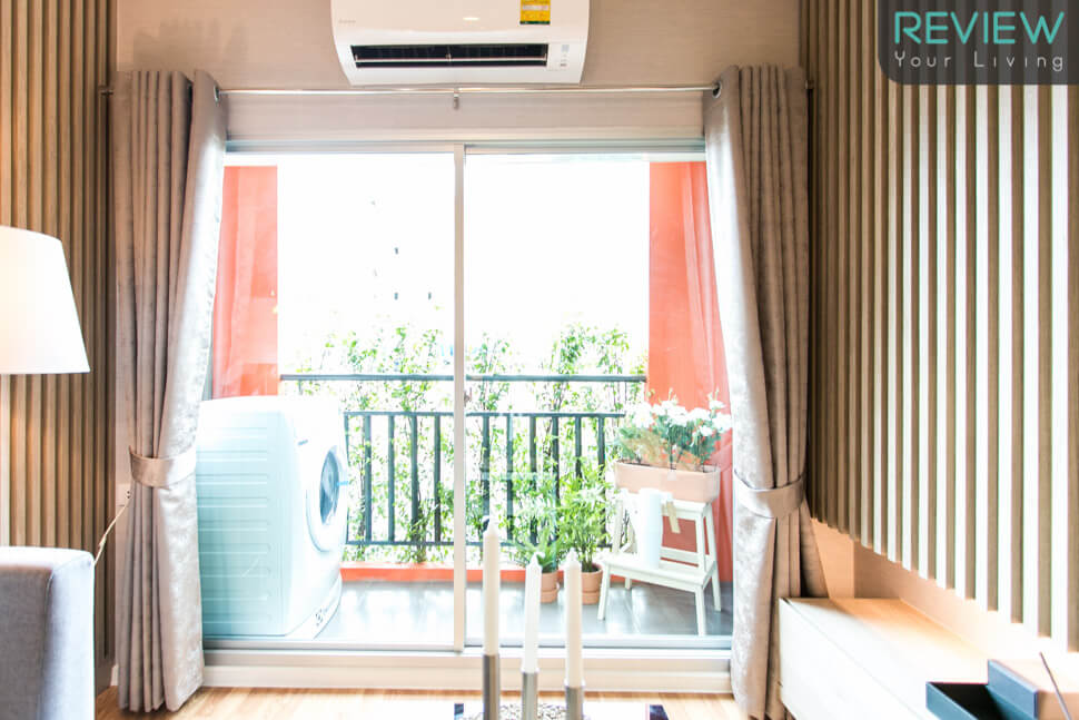 ลึกเข้าไปอีกหน่อยเป็นโซน Living Room ค่ะ ส่วนเครื่องปรับอากาศแบรนด์ Daikin ทางโครงการจะติดตั้งให้มาด้วยเลย สำหรับห้อง Studio นี้จะได้มา 1 ตัว ถูกติดตั้งเอาไว้เหนือประตูระเบียงค่ะ