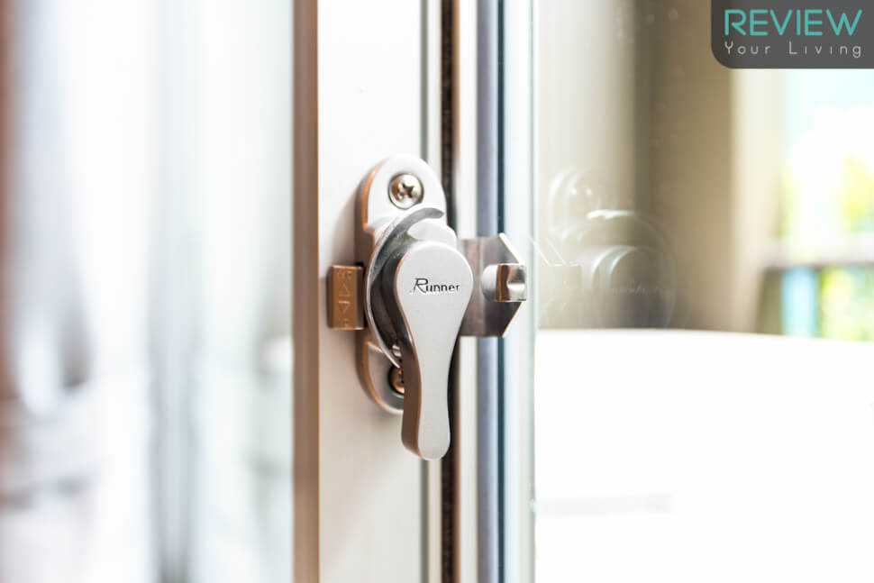 สำหรับประตูกระจกบานเลื่อนทุกยูนิต จะมีการติดตั้งตัวล็อคแบบก้นหอยมาให้เพิ่มเติมค่ะ ทำให้มีความแน่นหนามากขึ้น ใครที่อยู่ชั้นสูงๆ หากโดนลมพัดประตูก็จะไม่ขยับให้เกิดเสียงค่ะ