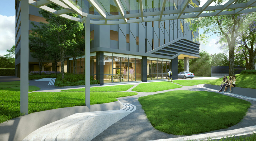 *ภาพจำลองใช้เพื่องานโฆษณาเท่านั้น รายละเอียดบางประการของโครงการที่ส่งมอบ อาจมีการเปลี่ยนแปลงตามความเหมาะสม โดยภาพนี้เป็นบรรยากาศจำลองสวนรวมใจ (Green Togetherness Area) บริเวณหน้าอาคารชั้น 1