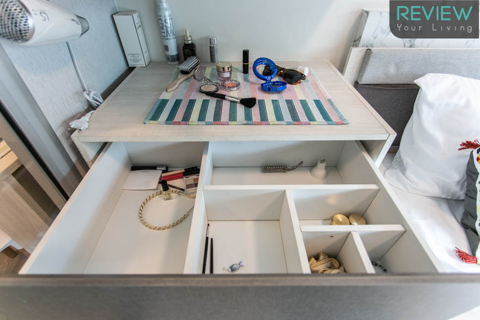 โต๊ะเครื่องแป้งมีฟังก์ชั่นสำหรับเก็บของจุกจิกได้อีกเยอะเลยค่ะ