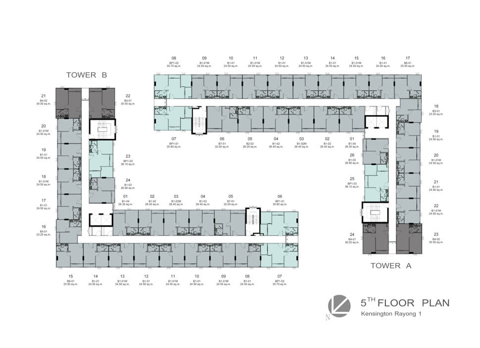 สำหรับ Unit Layout ของทั้ง 2 โครงการ Kensington Rayong North Wing และ Kensington Rayong South Wing จะมีรูปแบบเหมือนกัน