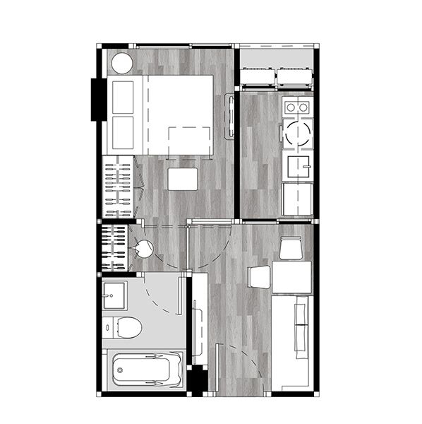 1 Bedroom Type Bs ขนาด 20.40 – 24.30 ตารางเมตร