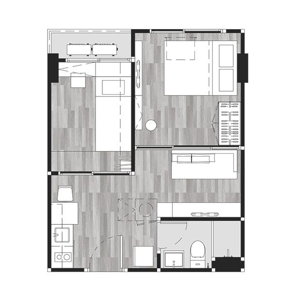 - 2 Bedroom Type B Plus ขนาด 33.52 – 39.46 ตารางเมตร