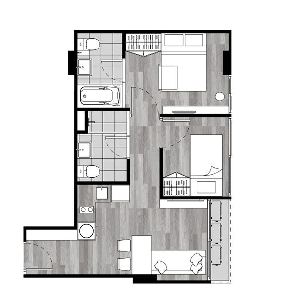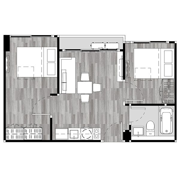 - 2 Bedroom Type C ขนาด 40.97 – 43.42 ตารางเมตร
