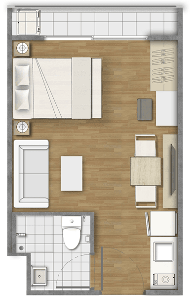แปลนห้อง Studio ขนาด 22 ตารางเมตร