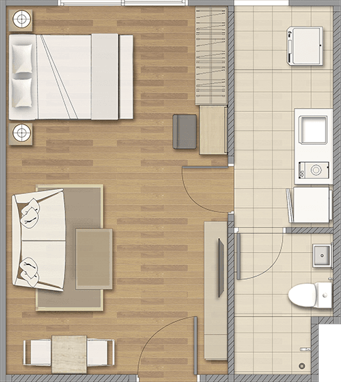แปลนห้อง Petite ขนาด 28 ตารางเมตร