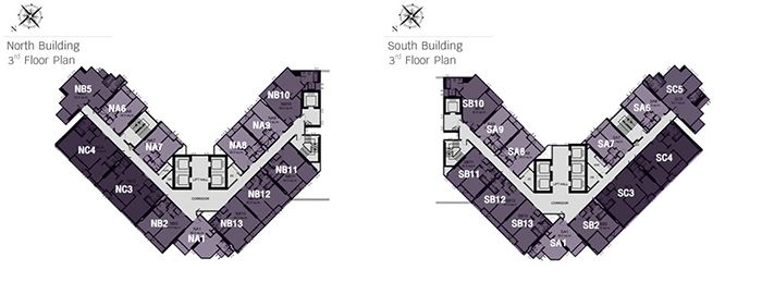 การจัดวางตำแหน่งห้องในแต่ละ wing จะเน้นเรื่องความเป็นส่วนตัว จำนวนห้องจึงมีเพียง 6 ยูนิต ต่อ1 wing เท่านั้น