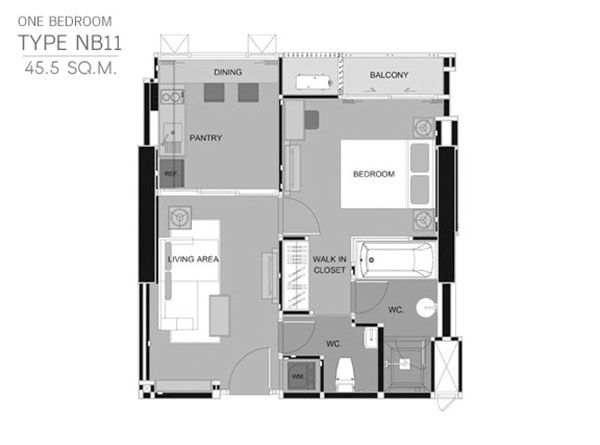 ห้อง Type นี้จะเน้นพื้นที่ในห้องครัวให้กว้างหน่อยตามชื่อเลยนะครับ ใครที่ชอบทำกับข้าวน่าจะถูกใจห้องนี้