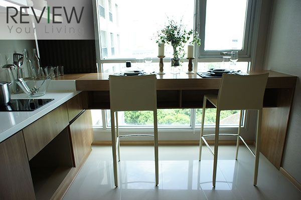 การใช้งานของห้องนี้ไม่ได้เน้นการเข้าครัวทำกับข้าวหนักๆ นะครับ เลยได้เป็นครัวเปิด มี island เล็กๆ เป็นส่วนเชื่อมต่อพื้นที่ให้ดูกลมกลืนกัน อ่างล้างจานจะอยู่ฝั่งเคาน์เตอร์ด้านนี้นะครับ
