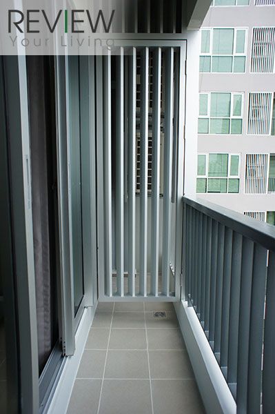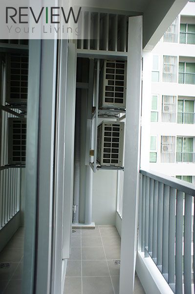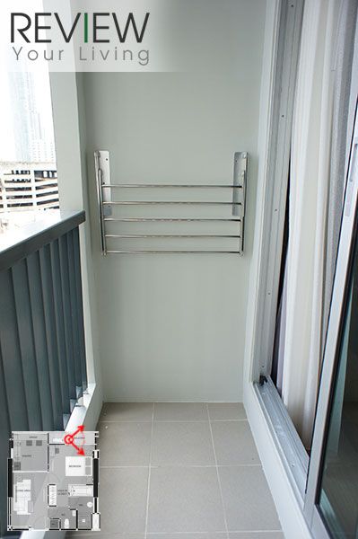 พื้นที่ระเบียงไม่ได้กว้างมากนะครับ แต่ก็พอใช้งานได้ดี ทางโครงการติดตั้งที่แขวนผ้าแบบพับเก็บได้มาให้เรียบร้อย