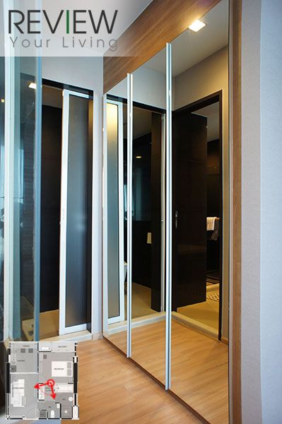 ตู้เสื้อผ้าติดกระจกบานใหญ่เต็มผนังเลย อันนี้ทางโครงการก็ Built-in ไว้ตรงหน้าห้องน้ำ อาบน้ำเสร็จก็ออกมาแต่งตัวได้เลย