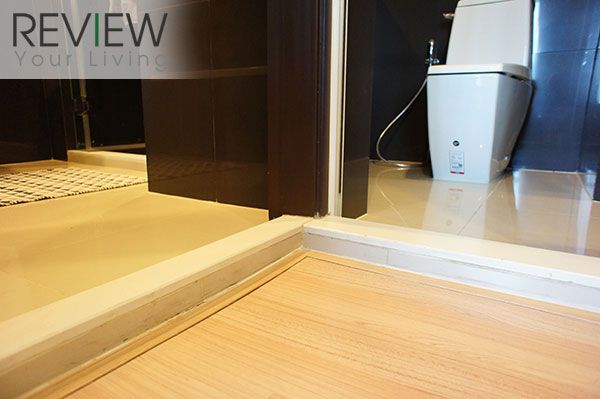 ธรณีประตูห้องน้ำจะกั้นสูงขึ้นมาประมาณ 5 ซม. แทนการดร๊อปพื้นห้องน้ำครับ