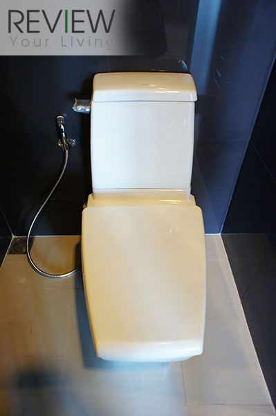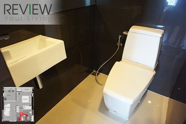 ในห้องน้ำซึ่งแยกออกมาจากบริเวณห้องอาบน้ำนะครับ แต่จะมีประตูทางเข้า 2 ทาง ทั้งจากฝั่งห้องนอน และห้องนั่งเล่นครับ โดยประตูทางด้านห้องนอนจะเป็นประตูบานเลื่อน ส่วนประตูฝั่งห้องนั่งเล่นเป็นบานสวิงครับ