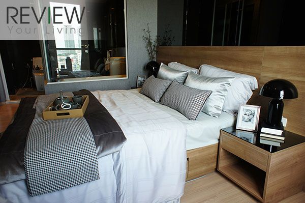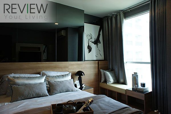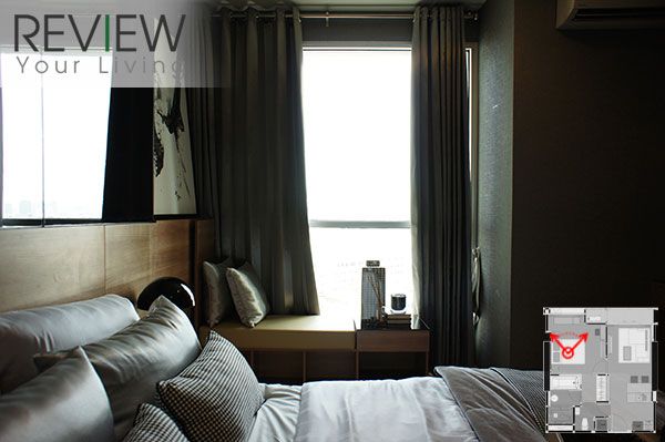 ภายในห้องนอนดูมีพื้นที่กว้างมากขึ้น เพราะไม่มีระเบียงในห้องนอนนะครับ พื้นที่ห้องจึงกว้างติดริมกระจกเลย