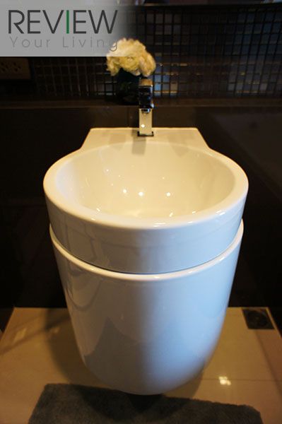เข้าห้องน้ำมาเจออ่างล้างหน้าทรงกลมอยู่โซนกลางห้องน้ำเลยครับ