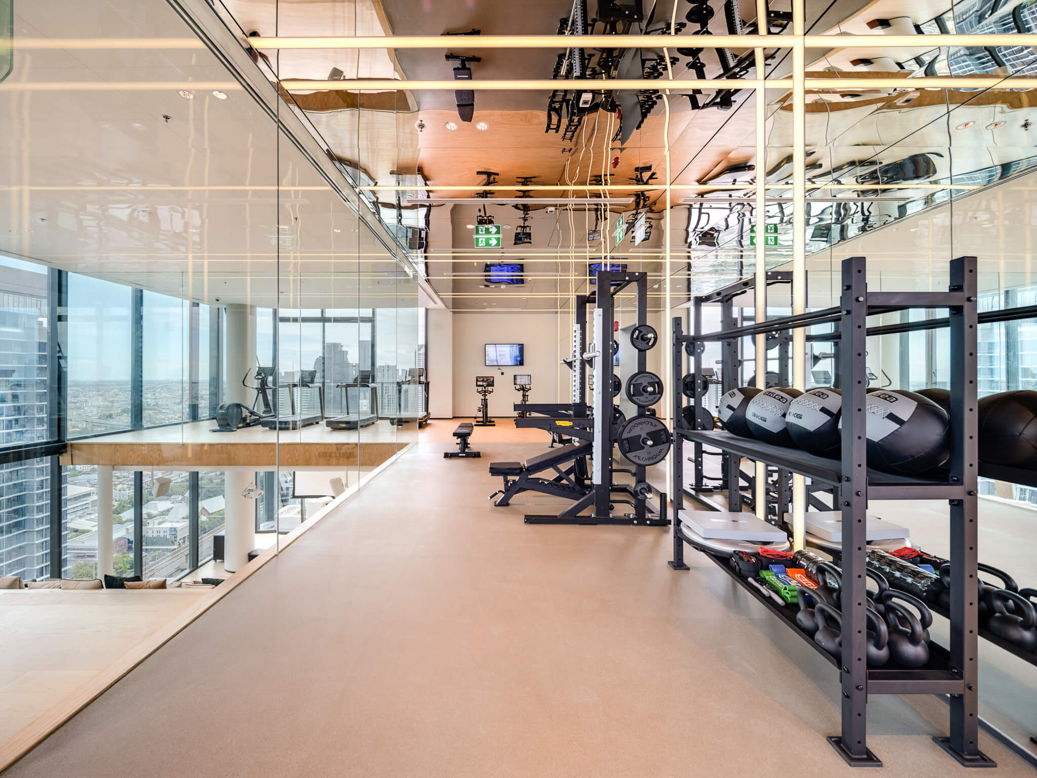 ห้องออกกำลังกายอเนกประสงค์พร้อมห้องยิมสตูดิโอ ที่มีจุดเด่น คือ ออกแบบให้เป็นห้องกระจกเต็มบาน รับวิวเมืองได้เต็มสายตา สามารถออกกำลังกายไปด้วยและชมวิวเมืองได้แบบพาโนรามา โดยห้องออกกำลังกาย แบ่งเป็น 2 โซน ช่วยลดความหนาแน่น และมีอุปกรณ์ออกกำลังกายจากแบรนด์อันดับ 1 ของโลกจากอิตาลีอย่าง Technogym ให้เล่นมากกว่า 20 ฟังก์ชั่น นอกจากนี้ ยังมีห้องสตูดิโอ สำหรับให้ครูมาสอนโยคะ ซ้อมเต้น หรือกิจกรรมอื่นๆ ได้ ห้องรับประทานอาหาร และจัดกิจกรรมส่วนตัว เหมาะสำหรับจองเพื่อจัดปาร์ตี้หรือเชิญเชฟที่ถูกใจมาทำอาหารรับประทานร่วมกับครอบครัวและเพื่อนๆ และห้องนี้ยังสามารถเชื่อมต่อไปยังพื้นที่ด้านข้างห้องซึ่งเป็นพื้นที่สำหรับจัดกิจกรรมได้ จุดพักผ่อนชั้นดาดฟ้า ซึ่งเป็นจุดชมวิวที่สวยที่สุดของย่านสาทร เห็นทั้งวิวแม่น้ำเจ้าพระยาและวิวเมือง ช่วงเย็นๆ มานั่งกินลมชมวิว เล่นโยคะรับอาทิตย์ยามเช้า หรือจะนอนอาบแดดบริเวณนี้ก็ได้