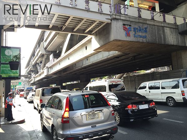 ส่วนใครที่ยังติดกับการเดินทางด้วยรถส่วนตัว เส้นทางบนถนนสาทรใต้โซนนี้ก็จัดว่าเดินทางได้สะดวกไม่แพ้กัน แต่จะติดปัญหามากหน่อยก็ตรงปัญหารถติดบริเวณแยกสุรศักดิ์ที่หนักหนาเอาการ จะว่าไปแล้วตลอดทั้งถนนสาทรก็มีปัญหารถติดเป็นประจำอยู่แล้วตลอดทั้งเส้น โดยเฉพาะในช่วงเวลาเช้าและเย็น ยิ่งในช่วงที่เปิดภาคเรียนด้วยแล้ว รับรองว่าติดตั้งแต่เช้ายันสาย และตั้งแต่บ่ายยังค่ำกันเลยทีเดียว ข้อเด่นอีกอย่างของทำเลที่ตั้งโครงการนี้ก็คือ อยู่ใกล้ด่านทางด่วน แค่คุณลูกบ้านของโครงการเลี้ยวซ้ายออกมาตรงแยกสุรศักดิ์แล้วเลี้ยวเข้าถนนเจริญราษฏร์ ก็จะเจอด่านขึ้นทางด่วนศรีรัช ด่านสาทร ข้ามไปฝั่งดาวคะนอง หรือบางนาได้สบายๆ