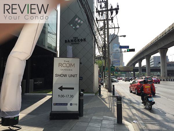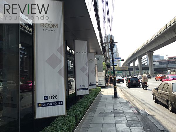 ลงมาแล้วเดินมาอีกนิดหน่อยก็จะถึงตัวโครงการแล้วครับ เห็นชื่อโครงการ The Room สาทร อยู่ด้วยก็อย่างเพิ่งงงนะครับ เพราะสำนักงานขายของโครงการ The Room สาทร ย้ายมาอยู่ที่นี่ด้วย