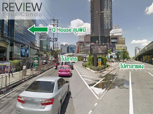เลี้ยวซ้ายมาแล้วจะเจอตึก Q House ลุมพินี อยู่ด้านซ้ายมือ ถา้ใครเข้าผิดช่องขึ้นสะพานข้ามแยกไป ก็จะไปทางศาลาแดงเลยครับ