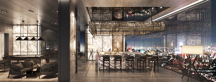 ภาพรวม Facilities ส่วนกลางที่จัดไว้ชั้นบนของอาคาร ชั้น 41-43 ซึ่งนอกจากจะได้ใช้งานพื้นที่ส่วนกลางแล้ว ยังได้รับวิวเมืองโดยรอบในมุมสูงอีกด้วย