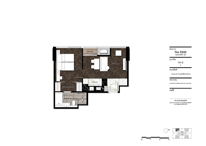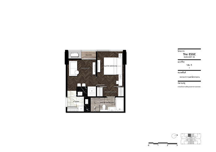 แปลนห้อง 1 Bedroom 1 Bathroom Type 1A-1 ขนาด 38.50 ตารางเมตร