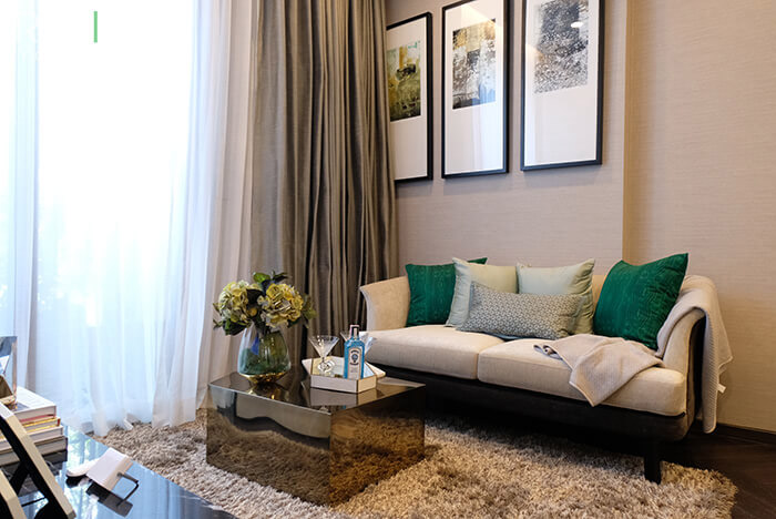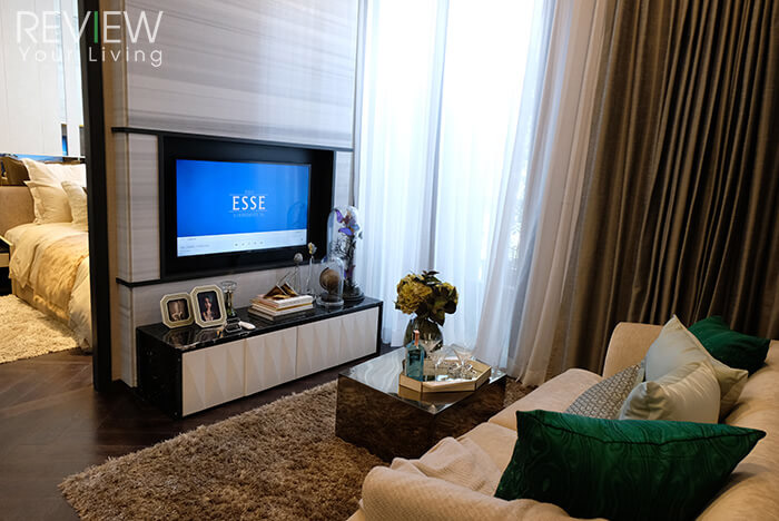 แบบห้องของ THE ESSE SUKHUMVIT 36 ที่เราจะพาไปชมมีด้วยกัน 3 แบบ ทุกยูนิตขายแบบ Fully Fitted มาพร้อมวัสดุและสุขภัณฑ์คุณภาพซึ่งถูกคัดสรรมาอย่างดี ไม่ว่าจะเป็นชุดครัวพร้อมเตาไฟฟ้า, เครื่องดูดควัน, สุขภัณฑ์ในห้องน้ำ, Walk-in Closet, เฟอร์นิเจอร์ Built-in รวมถึงผ้าม่านและวอลเปเปอร์ที่ออกแบบร่วมกับ Jim Thompson เพื่อลูกบ้านของโครงการโดยเฉพาะ อีกหนึ่งความพิเศษคือผนังบริเวณคอนโซลทีวีในห้องนั่งเล่นทุกยูนิตจะตกแต่งด้วยหินแท้ ซึ่งสีและลวดลายของหินนั้นจะแตกต่างกันไปตามแต่ละไทป์